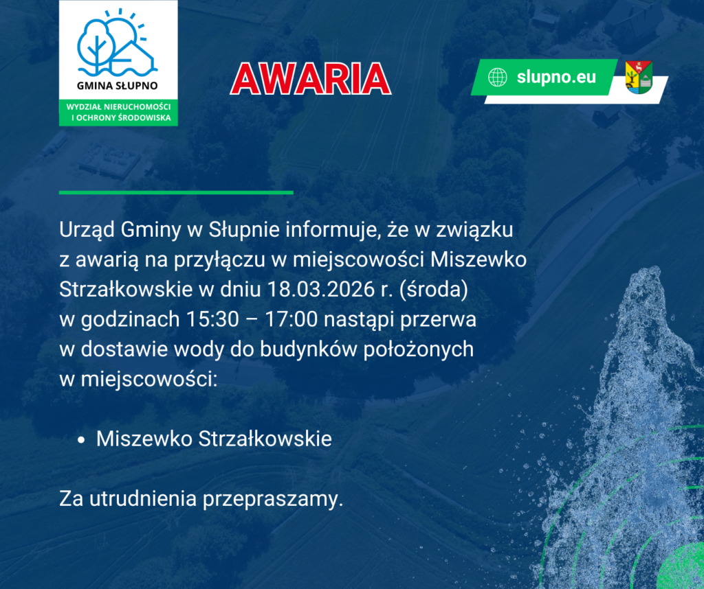 Czytaj dalej „WYMIANA WODOMIERZY [Nowe Gulczewo i Święcieniec]”Gmina Słupno informuje, że w związku z trwającą wymianą wodomierzy Konserwatorzy realizujący zadanie będą się z Państwem kontaktować telefonicznie w celu uzgodnienia godziny wymiany urządzenia. Bardzo prosimy o współpracę.