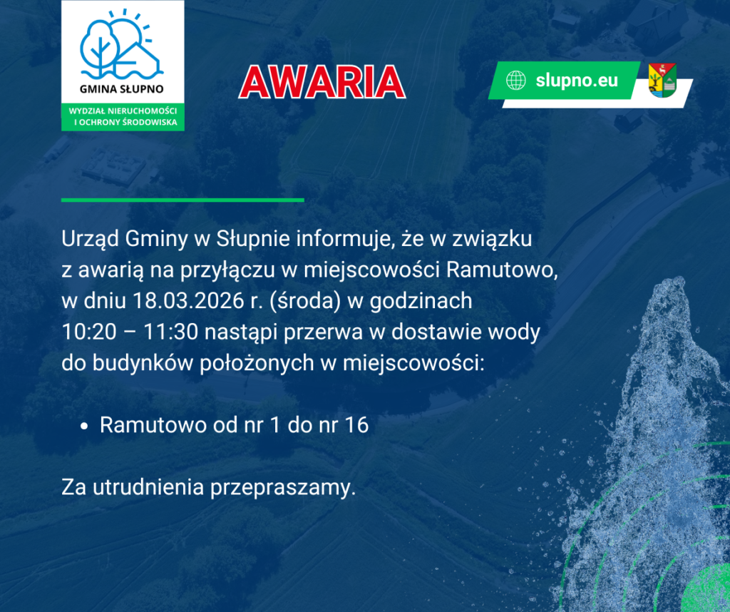 Gmina Słupno informuje, że w związku z trwającą wymianą wodomierzy Konserwatorzy realizujący zadanie będą się z Państwem kontaktować telefonicznie w celu uzgodnienia godziny wymiany urządzenia. Bardzo prosimy o współpracę.