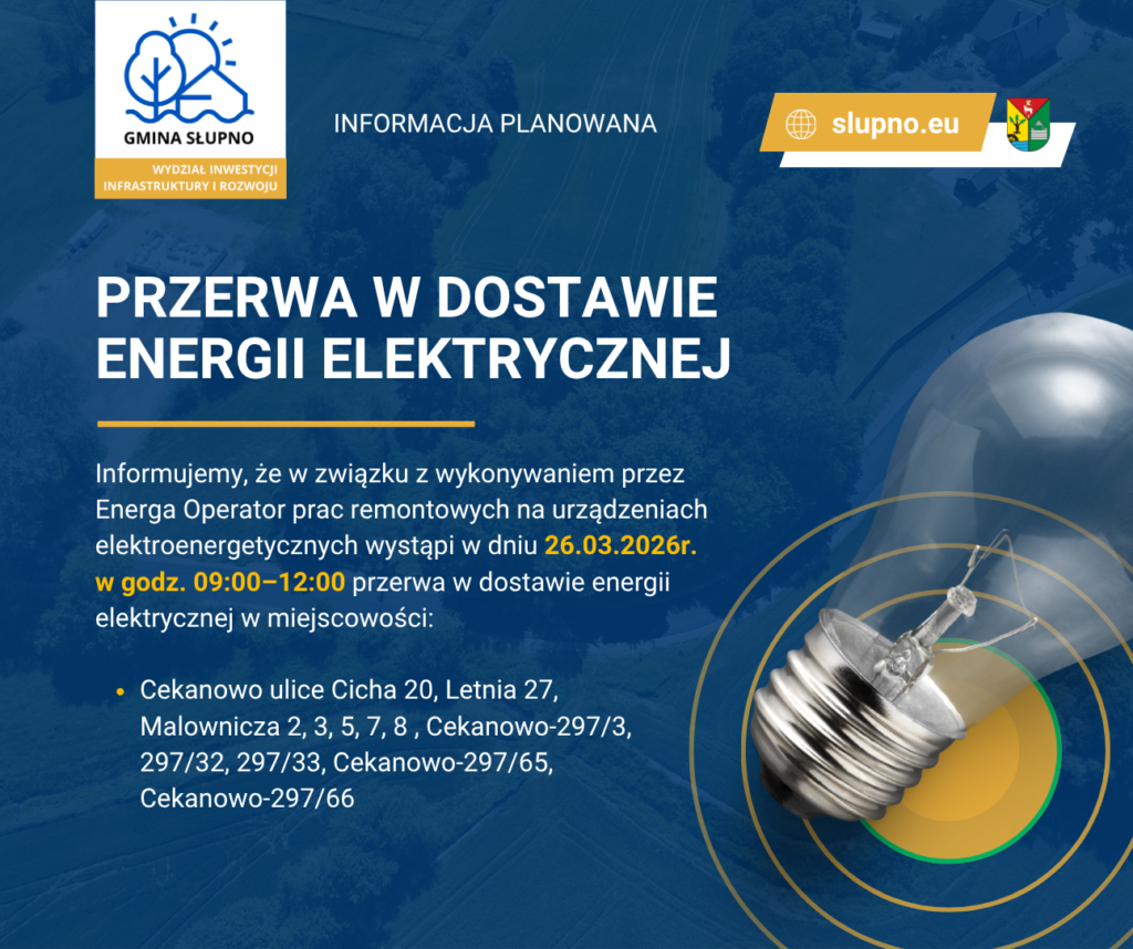 Gmina Słupno informuje, że w związku z trwającą wymianą wodomierzy Konserwatorzy realizujący zadanie będą się z Państwem kontaktować telefonicznie w celu uzgodnienia godziny wymiany urządzenia. Bardzo prosimy o współpracę.
