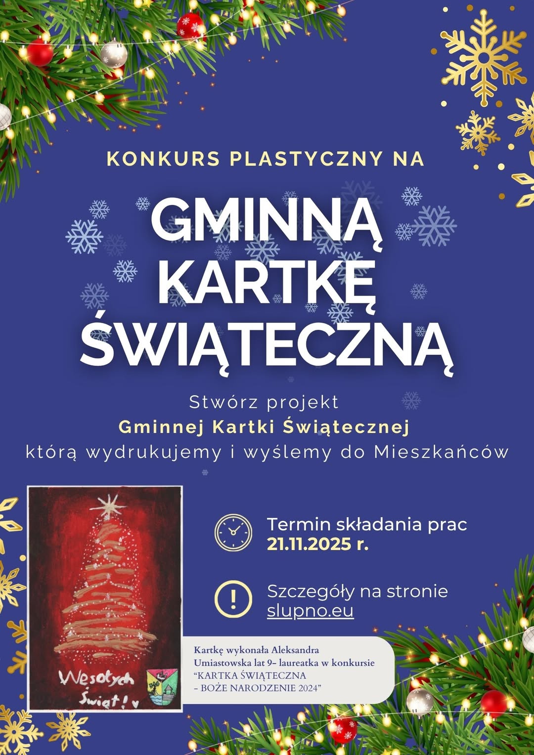 Zapraszamy wszystkich małych i dużych artystów do udziału w naszym świątecznym konkursie 🎄Stwórzcie własny projekt Gminnej Kartki Świątecznej, która może trafić do skrzynek mieszkańców całej gminy! To świetna okazja, by podzielić się swoim talentem i wprowadzić nas wszystkich w magiczny, bożonarodzeniowy nastrój