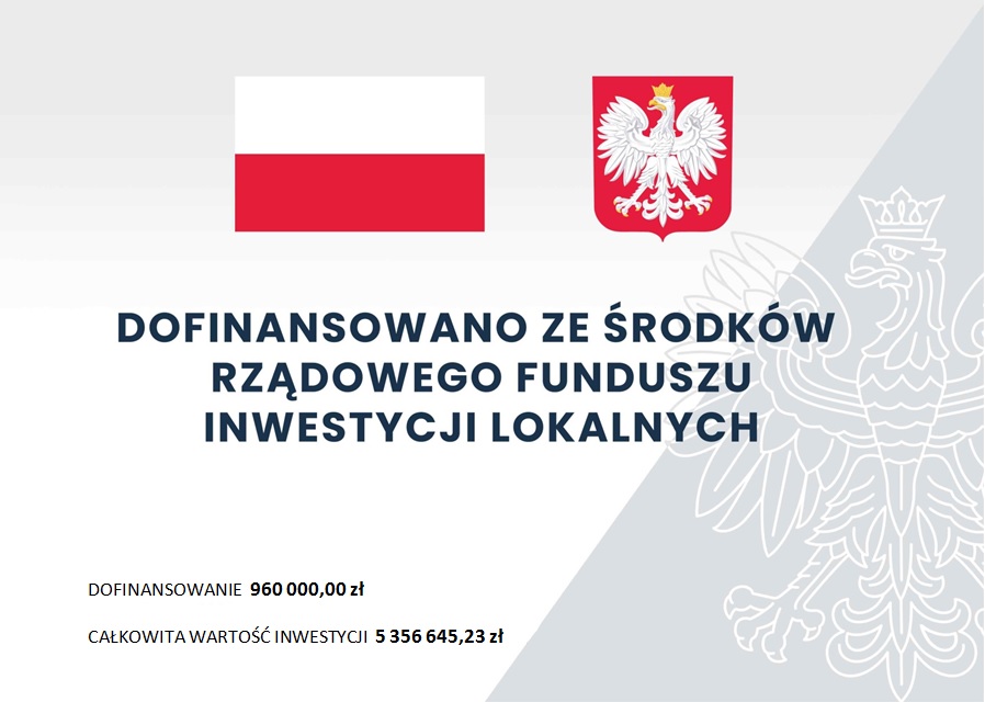 Gmina Słupno otrzymała wsparcie ze środków Rządowego Funduszu Inwestycji Lokalnych w kwocie 954 319,00zł.